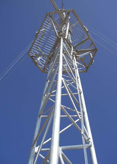 塔柱正三角型布置,节约钢材,跟开小,占地面积小,节约土地资源,造价低廉(仅为角钢自立塔的1/3或更少).选址便利.塔身自重轻,运输和安装便捷、建设工期短,塔型随风荷载曲线变化设计,线条流畅,遇罕遇风灾不易倒塌,安全系数高.设计符合国家钢结构设计规范和塔桅设计规程,结构安全可靠.