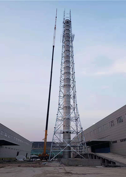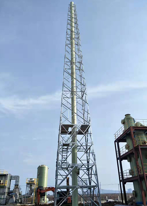 火炬塔是用钢结构支撑架来支撑烟囱管体的一种铁塔结构,结构形式有自立式和拉线式,多用于化工企业、石油部门、易燃气体排放设备等
